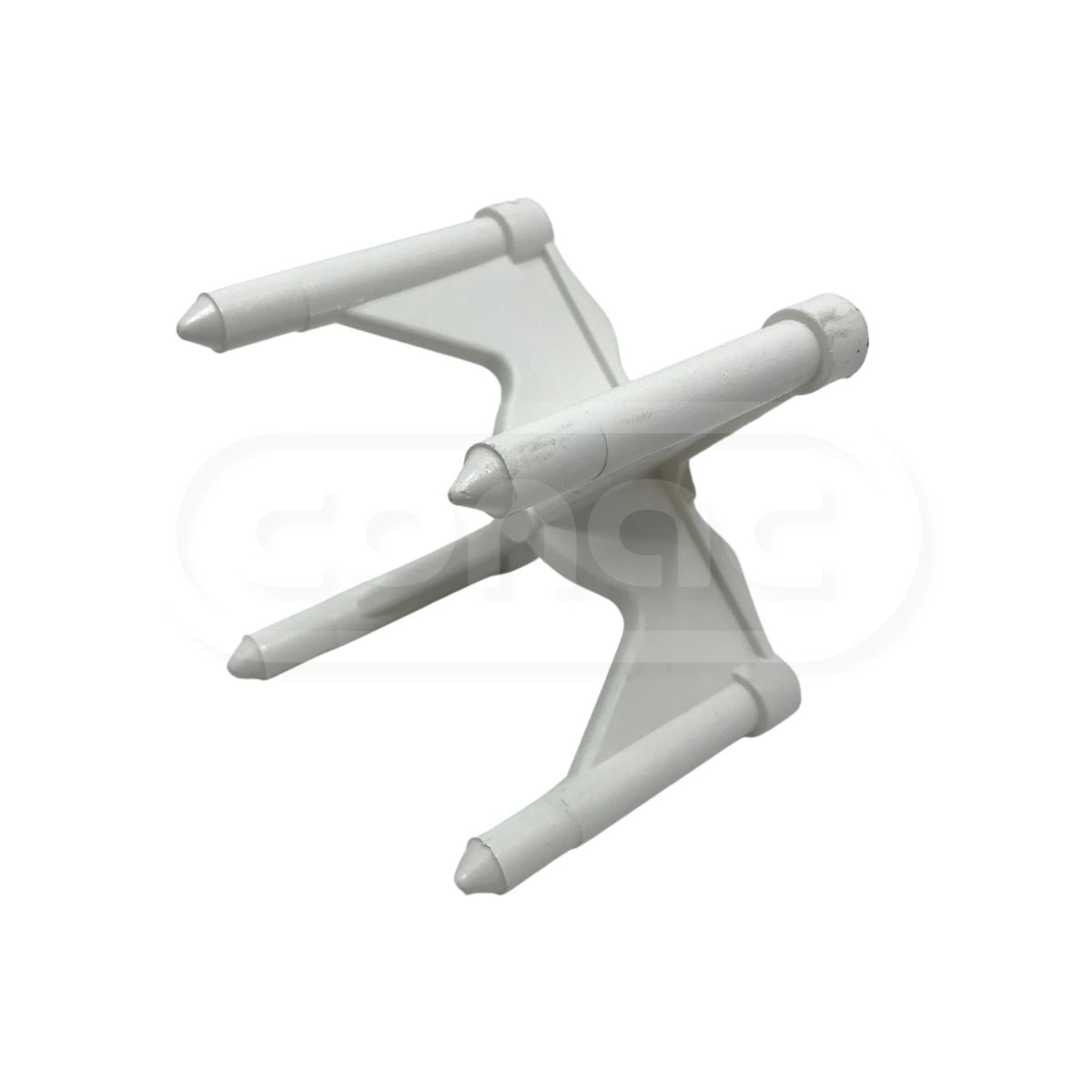 They feature 4 legs with tapered bases coming to a finely rounded point. They do not have a clip-on section, but rather a flat section perfect for supporting mesh or bars of most sizes including very large ones.